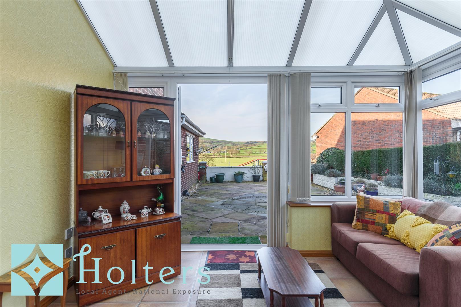 The accommodation is arranged over two floors and has clearly been a much-loved family home. On the ground floor, a welcoming entrance hall leads through to a spacious living room, which in turn opens into a well-proportioned conservatory. This is a real highlight of the property, flooded with natural light and enjoying open views across the fields and hills beyond, creating an additional reception space that can be enjoyed throughout the year.