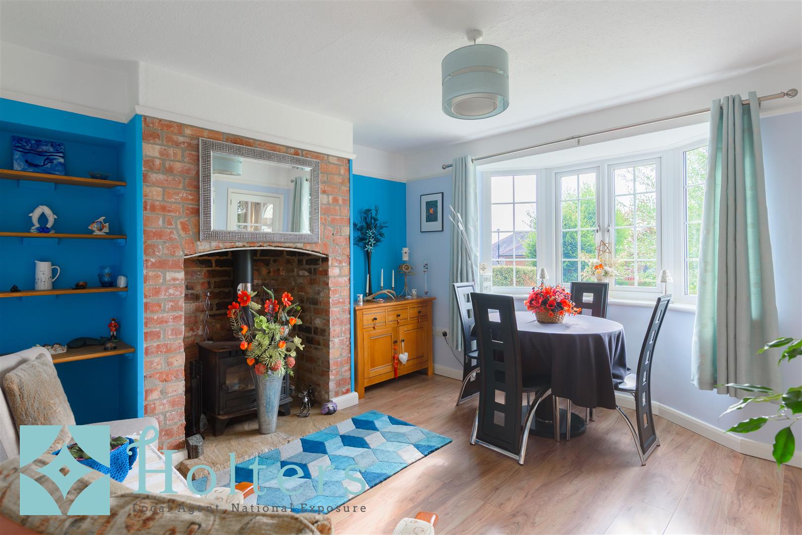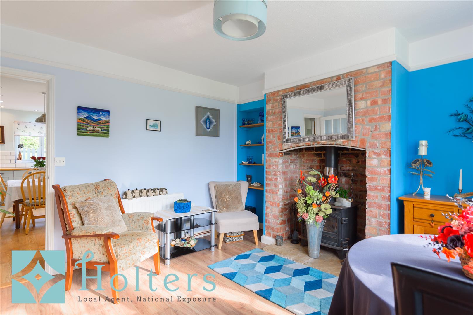 Inside, the layout flows beautifully. Two reception rooms at the front each have their own distinct character, one more traditional with a bay window and brick fireplace, the other with a contemporary feel, both featuring wood-burning stoves for a cosy atmosphere. At the heart of the home is the bright and sociable kitchen/diner, offering ample work and storage space and connecting to a useful utility room. Off the utility is the upgraded shower room.