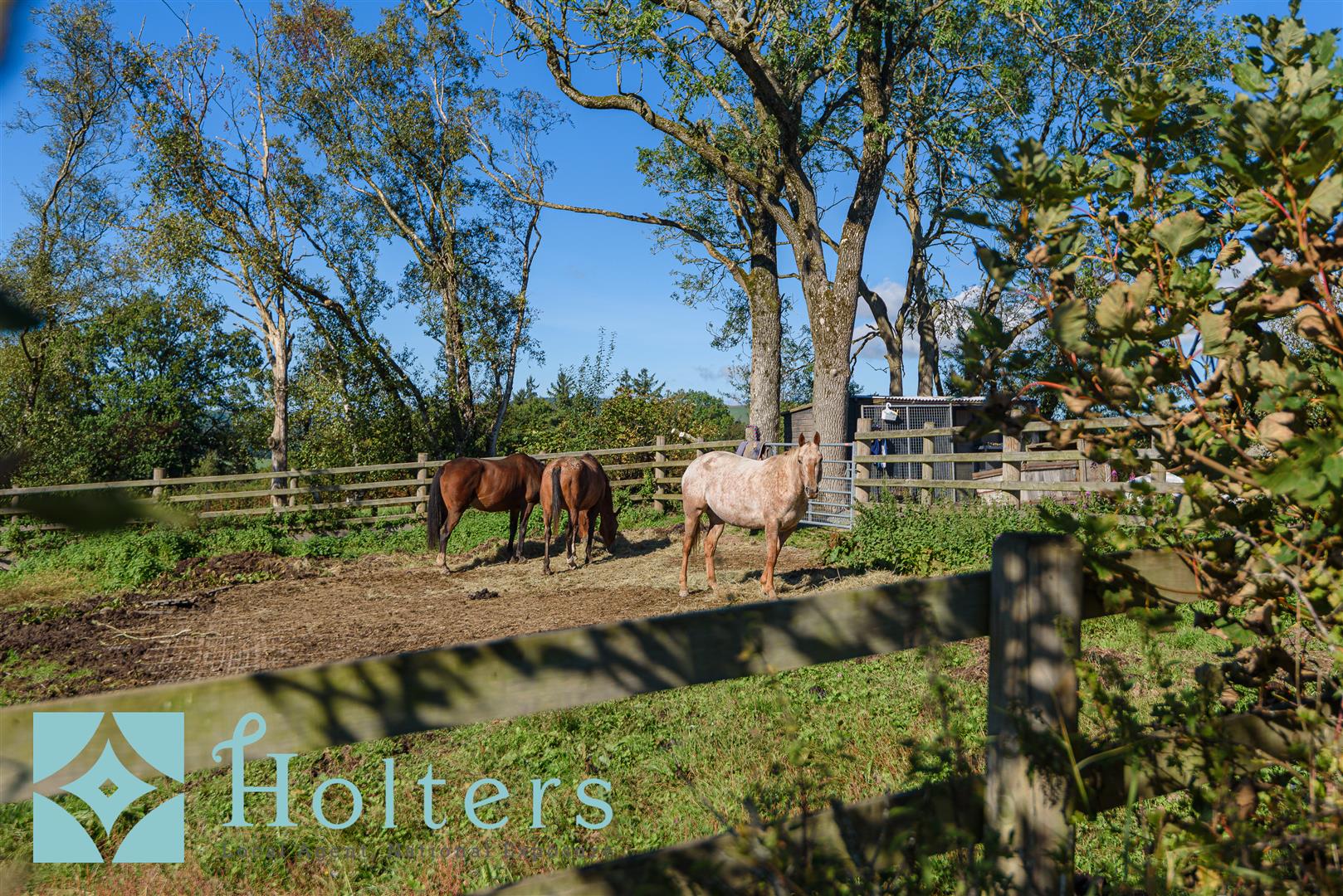 Externally the cottage stands on just under three acres. With two vehicular accesses off the council road, the first leads to the front of the cottage with the second, a double gated access opening onto a large gravelled driveway, which offers ample parking and turning for a number of vehicles and parking trailers. To the side of the driveway is a modern concrete yard which precedes the American Barn and stables, ideal for mucking out the horses. The impressive detached timber clad Barn (16.5m x 9.2m) has double doors to the front, with a concrete floor, power and lighting. Offering a fodder store and 7 stables. Complimenting the stables are three well fenced and maintained paddocks, mainly flat with a gentle slope, perfect pony paddocks. To the front of the cottage is a garden, ideal if you are looking for some home grown veg or for children to play. To the side of the driveway is a dog kennel and two detached garden sheds.