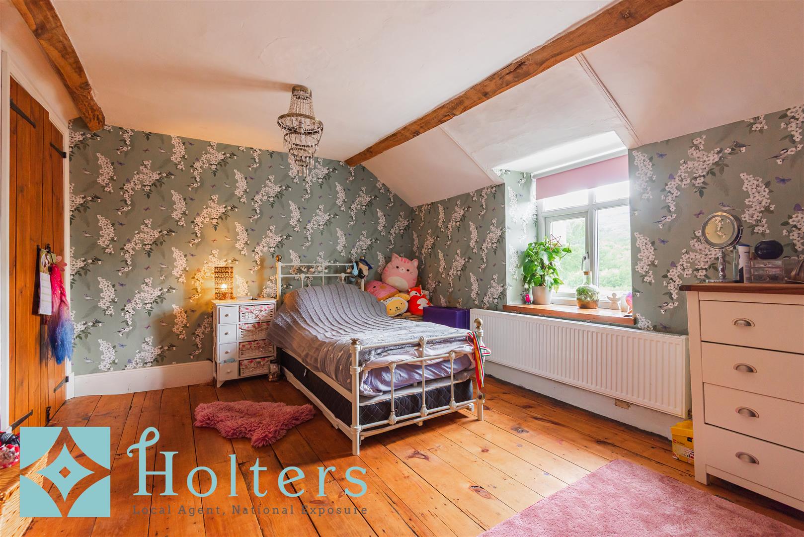 Upstairs, you'll find four generously sized double bedrooms and a stunning family bathroom, complete with a freestanding bath, large walk-in shower, his-and-hers vanity unit, and WC. Period features continue upstairs, with original beams and a feature fireplace in the master bedroom. Two of the bedrooms benefit from built-in storage, and there is an extremely useful additional space in the form of a “hobbit hole,” accessed at the top of the staircase.
