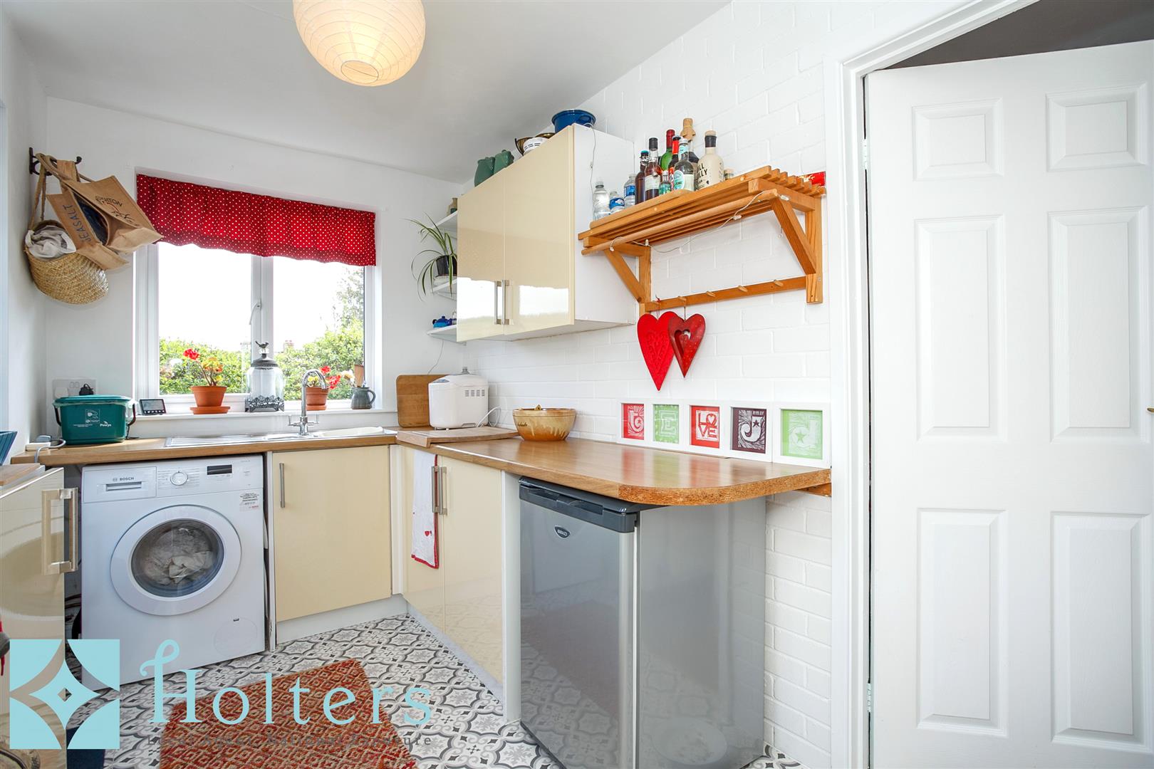 Outside, Sheringham is accessed from Offas Road and approached over a private lane. The property has a gated driveway with off road parking for couple of vehicles and has a lawned front garden, as well as a side decked balcony area, which poses as the perfect place to relax/entertain on within the warmer months of the year, whilst enjoying distant views across to Kinsley Wood and Garth Hill. A pathway along the opposite side and rear of the bungalow leads to steps, which provide access down to a wicket gate opening to the roadside pavement. In addition, there is a further decked seating area at the back of the property with direct access back into the utility room, a useful garden shed and plenty of planted beds.