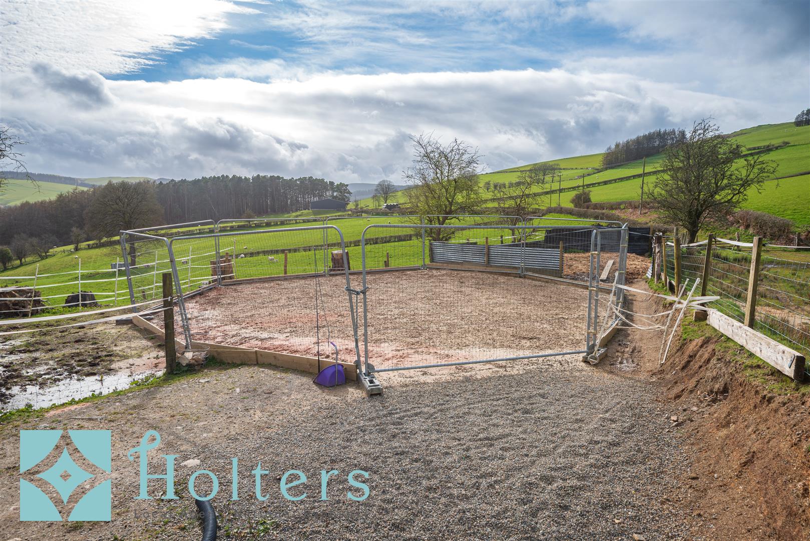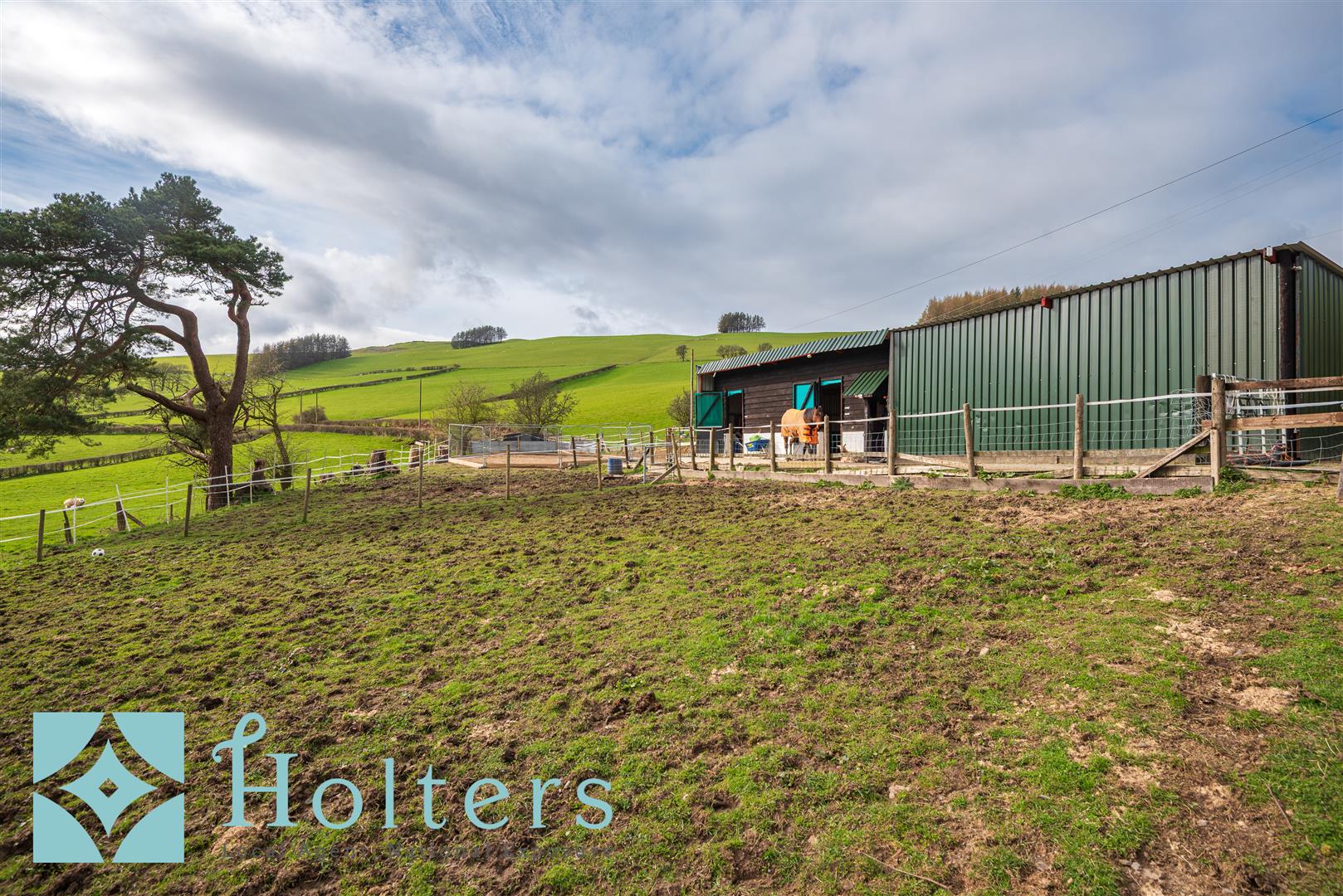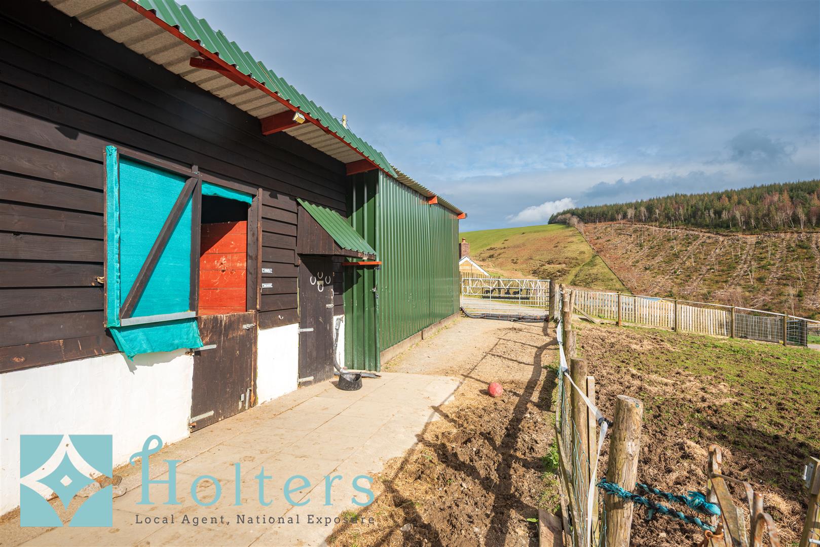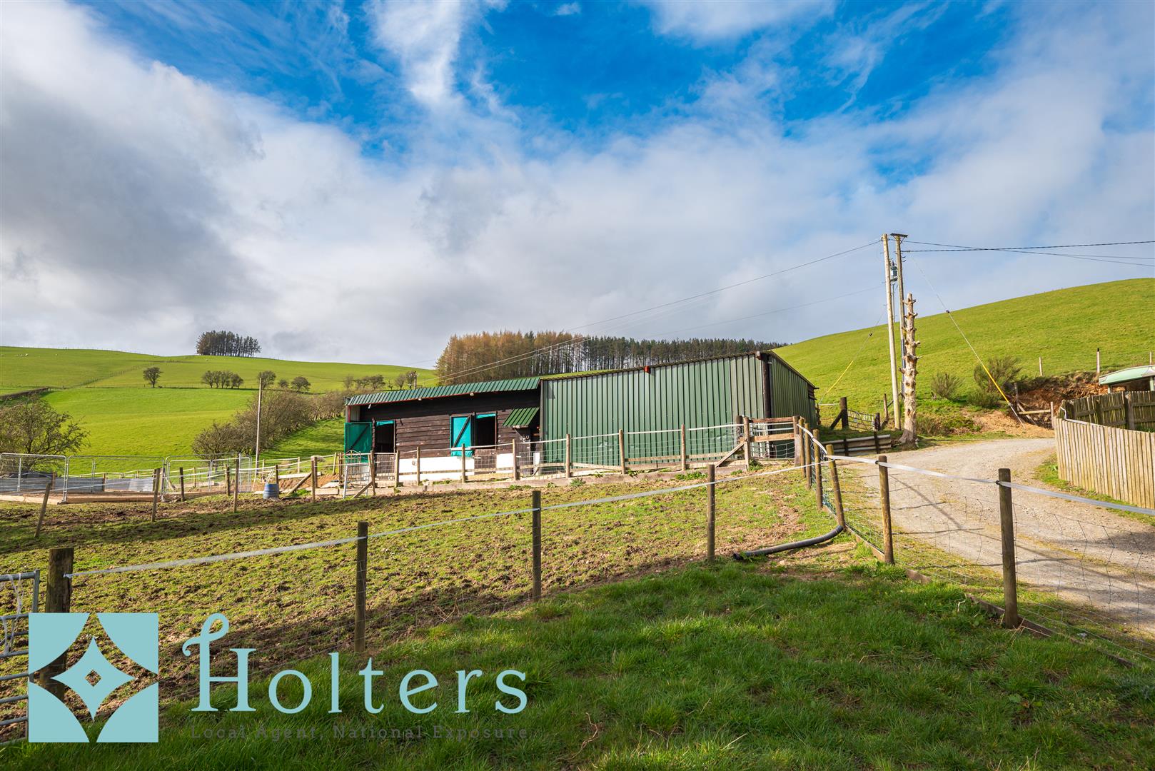 The land extends to approximately one acre and is divided into five paddocks, offering flexibility for livestock or equestrian use. For riders in particular, the location is exceptional: Glyndwr's Way passes directly along the top of the property, providing immediate access to miles of riding without the need to use a road.