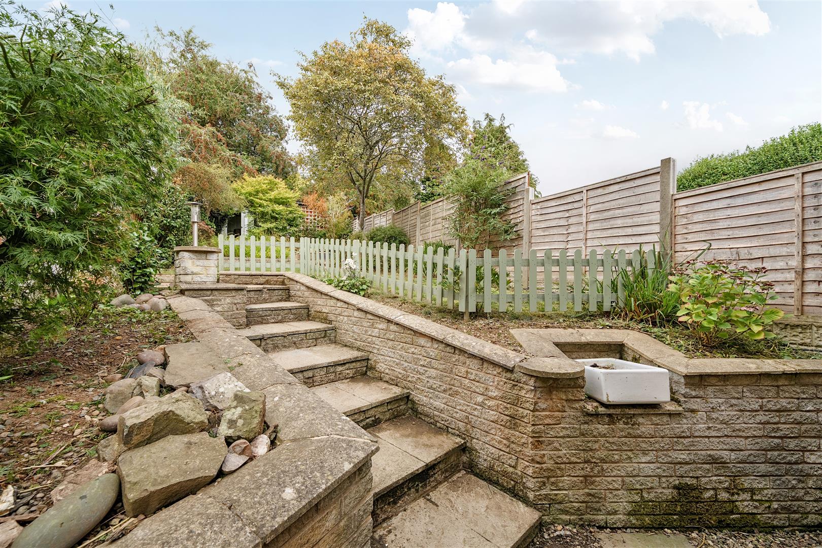 Outside, at the front a driveway provides off road parking for 2 vehicles, while a side passage and gate allows access into the tiered rear garden, which has paved steps, well-defined fenced boundaries, lawned and hard-standing sections, flowered beds, a variety of mature shrubs and specimen trees and a pathway which leads up to the end of the garden where there are 2 useful storage sheds. The larger, brick built shed/workshop has power and lighting. A further storage shed is found alongside the rear extension.