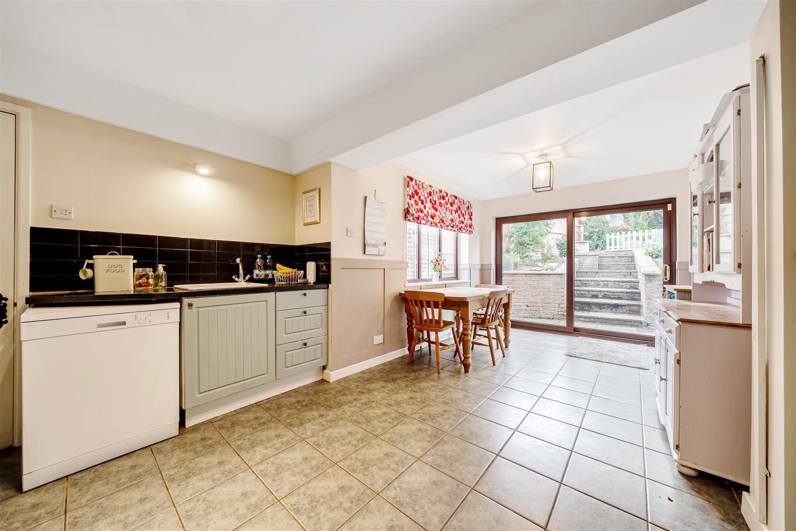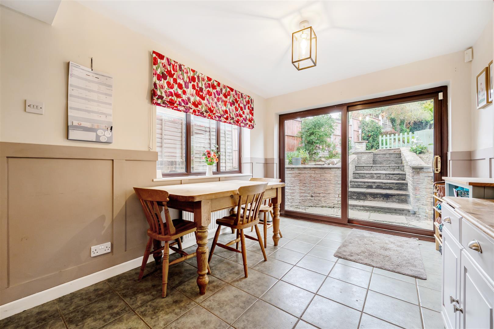 Inside, the accommodation spans across 2 storeys and is made up on the ground floor of an entrance porch, hallway with stairs rising off to the first floor, a living room complete with wood flooring and a feature wood-burning stove, a downstairs W.C, a utility housing the 'Worcester' combi boiler and an open-plan kitchen diner, which has wall-length patio doors leading out to the rear garden. A further door from the utility provides access out to the rear. On the first floor, the landing area gives way to the bathroom, a separate shower room and all 3 bedrooms, which all benefit from built-in wardrobes/cupboards. The front 2 bedrooms and landing area enjoy panoramic views over neighbouring rooftops and towards the distant countryside.